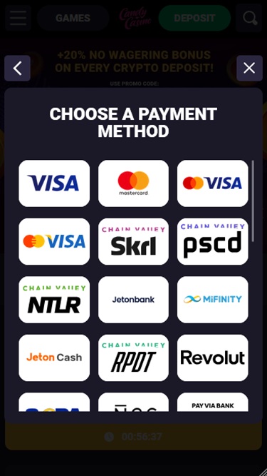 Candy Casinoの魅力をさらに高めているのは、多様な決済方法の豊富さです。VisaやMasterCardなどのカードから、 SkrillやNetellerなどのデジタルウォレット、さらにはビットコインやイーサリアムなどの暗号通貨まで、銀行取引は利便性を重視して設計されています。入金はスムーズで、出金は確認後、通常営業日24時間以内に処理されます。