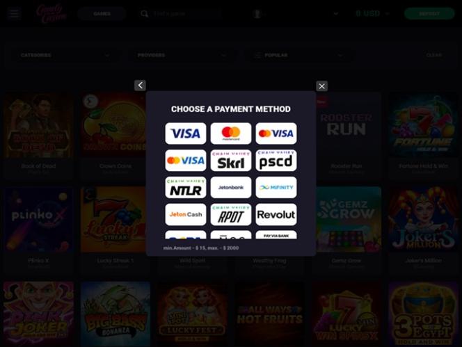 一般利用規約に記載されている制限国のリストにご注意ください。注目すべきは、Candy Casinoの重点市場の一つがドイツとスイスであるということです。