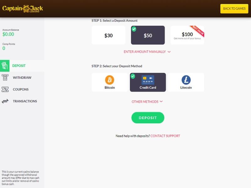 Captain Jack Casino は Real Time Gaming and Spinlogic Gamingを採用しており、プレイヤーはインスタント Web ベース モデルとダウンロード可能なソフトウェアを通じてゲームをプレイすることができます。