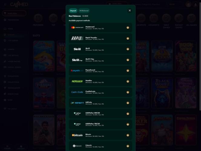 Cashed Casinoは、キュラソー賭博局の認可と規制を受けています。運営会社はドイツ、カナダ、オーストリア、アイルランドからのプレイヤーをウェブサイトに歓迎し、幅広いエンターテイメントオプションを提供しています。