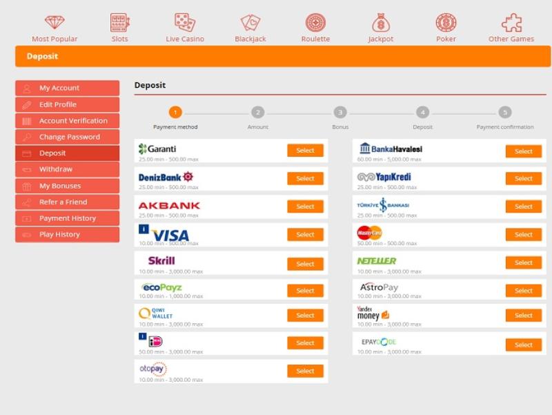 銀行振込、iDeal、MasterCard、Skrill、Neteller、Visa、ecoPayz、AstroPayに対応しており、銀行振込システムは非常に優れています。勝利金の出金は24時間保留されますが、eWalletの場合は1日以内に支払われます。クレジットカードと銀行振込の場合は、完了までに数日かかる場合があります。