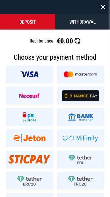 カジノゲームのライブラリと利用可能なゲームの数にご満足いただけたなら、このオペレーターのサービスはそれだけではありません。利用可能な決済方法の数も非常に多く、すべてのカジノメンバーが自分に合った方法を見つけることができると確信しています。ギャンブラーは、定評のある信頼性の高い従来の決済方法に加えて、迅速かつ人気の高い暗号通貨決済オプションも利用できます。