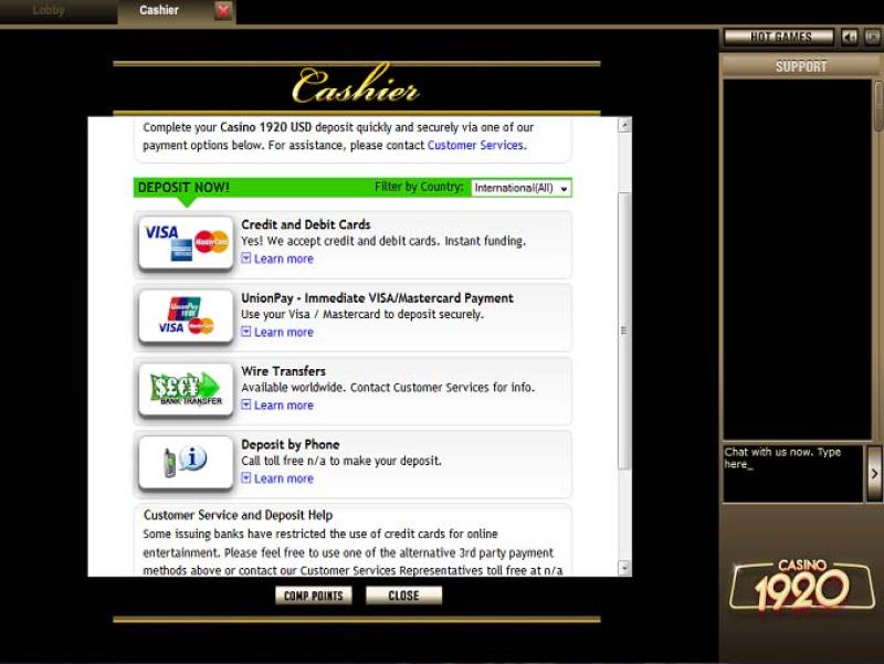 Casino 1920は Visionary iGamingを採用しており、ゲームはウェブベースのプラットフォームを通じて配信されるため、ウェブブラウザから直接プレイできます。ファイルを直接コンピューターに保存したい場合は、ダウンロード可能なソフトウェアもご利用いただけます。その他のゲーム