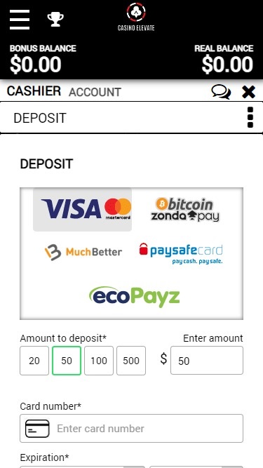 - Elevate Casino は金融取引に対して管理手数料を請求する場合があります。