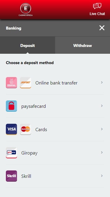 Casino Epocaは Microgaming, Evolution Gaming and Games Globalを採用しており、数百もの充実したゲームライブラリを備えています。カジノは、インスタントプレイモデルとダウンロード可能なソフトウェアの両方でご利用いただけます。