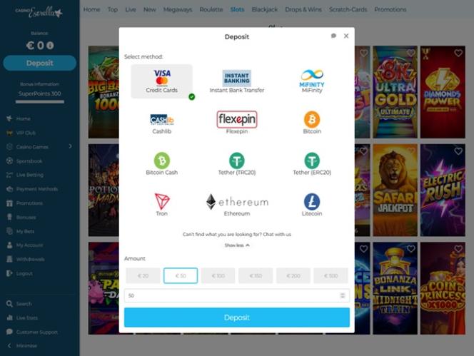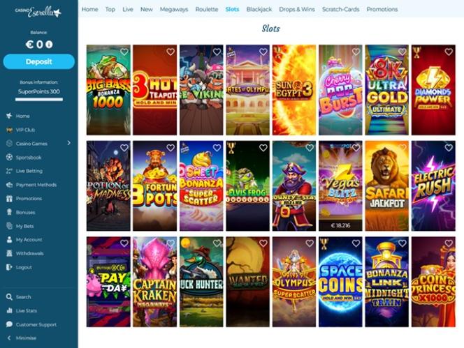 カジノ・エストレラは Net Entertainment, Playtech, BetSoft, Amatic Industries, Evolution Gaming, Habanero Systems, iSoftBet, Oryx, Play'n GO, playson, Quickspin, Relax Gaming, Saucify, SOFTSWISS, Thunderkick, Visionary iGaming, WM, Yggdrasil, Wazdan, GameArt, Booming Games, Stakelogic, Pragmatic Play, Nolimit City, Felt Gaming, Red Tiger Gaming, Booongo, Air Dice, LuckyStreak, Spinomenal, Red Rake Gaming, Fantasma Games, SYNOT Games, Revolver Gaming, Spin Games, Spinmatic, BGAMING, Northern Lights Gaming, Evoplay, Electric Elephant Games, Bulletproof Games, Mascot Gaming, Spearhead Studios, Swintt, Mancala Gaming, SmartSoft Gaming, Blue Guru Games, Lady Luck Games, Amusnet Interactive, bluberi, Blueprint Gaming, CT Interactive, EveryMatrix, Push Gaming, Genii, Gamomat, Authentic Gaming, Reflex Gaming, Storm Gaming Technology, Wild Streak Gaming, Golden Hero, 4ThePlayer, AvatarUX, ReelPlay, Japan Technicals Games, Rarestone Gaming, Boomerang Studios, Hacksaw Gaming, Max Win Gaming, Bang Bang Games, Arcadem, Slotmill, SilverBack Gaming, Peter And Sons, Armadillo Studios, FlipLuck, Atomic Slot Lab, Reel Kingdom, Indigo Magic, NowNow Gaming, Kitsune Studios and Turbo Gamesを採用しており、カジノゲームはウェブベースのプラットフォームからご利用いただけます。外出先でもカジノゲームをプレイしたい方のために、モバイルサイトもご用意しております。Blackjack