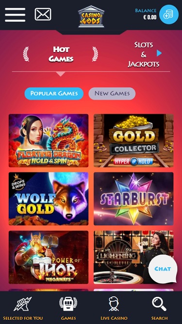 Casino Godsは Microgaming, Net Entertainment, Big Time Gaming, Evolution Gaming, Ezugi, iSoftBet, Oryx, Play'n GO, Quickspin, Relax Gaming, Yggdrasil, Wazdan, Pragmatic Play, Red Tiger Gaming, Fantasma Games, Skywind, Gameburger Studios, TrueLab Games, Games Global, NYX Interactive, Push Gaming, Gamomat, Half Pixel Studios, Eurostar Studios and Aurum Signature Studiosを採用しており、ウェブベースのインスタントプレイプラットフォームを通じて提供されます。ダウンロードは不要です。ページはブラウザで読み込まれ、すべての操作はブラウザ上で行えます。カジノはモバイルプレイに対応しており、スマートフォンからでもギャンブルをお楽しみいただけます。