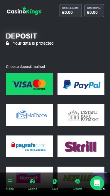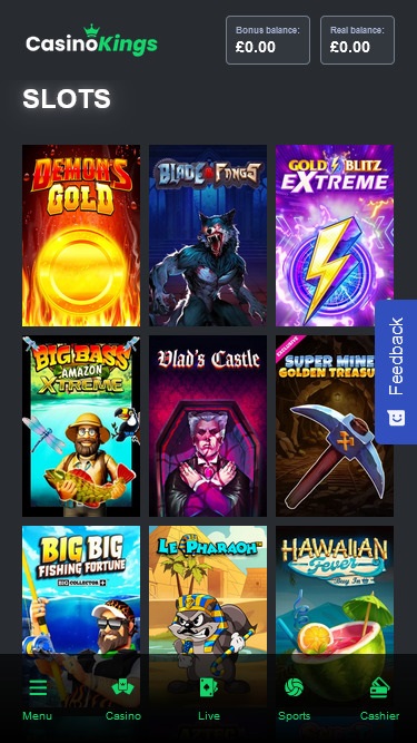 Casino Kingsは Microgaming, Net Entertainment, Playtech, 1x2gaming, Barcrest, Big Time Gaming, ELK Studios, Evolution Gaming, EYECON, lightningboxgames, Novomatic, Oryx, Play'n GO, Quickspin, Rabcat, Thunderkick, Wazdan, Pragmatic Play, Nolimit City, Red Tiger Gaming, Spinomenal, Skillzzgaming, Fugaso, SYNOT Games, Skywind, Triple Edge Studios, Northern Lights Gaming, Stormcraft Studios, Switch Studios, All41 Studios, Gluck Games, Gameburger Studios, Pulse 8 Studios, Neon Valley Studios, Shuffle Master, SpinPlay Games, Real Dealer Studios, GONG Gaming, On Air Entertainment, Buck Stakes Entertainment, Games Global, 2by2 Gaming, Ash Gaming, Blueprint Gaming, Greentube, NextGen, NYX Interactive, ProgressPlay, Tom Horn Gaming, WMS, Inspired Gaming, SG Interactive, Red7Mobile, CORE Gaming, Scientific Games, Reel Time Gaming, BF Games, Iron Dog Studio, Old Skool Studios, Foxium, Betdigital, Just For The Win, PearFiction Studios, Wild Streak Gaming, Slingshot Studios, Fortune Factory Studios, Gamevy, Crazy Tooth Studio, ReelPlay, Alchemy Gaming, Rarestone Gaming, Black Pudding Games, Snowborn Games, Hacksaw Gaming, Gold Coin Studios, Half Pixel Studios, Aurum Signature Studios, Lucksome Gaming, Area Vegas, Leap Gaming, Wishbone Games, Circular Arrow, HammerTime Games, INO Games, Nailed It! Games, Neko Games, Reel Kingdom, Oros Gaming and Light & Wonderを採用しており、カジノのゲームはウェブベースのインスタントプレイプラットフォームを通じて提供されます。つまり、カジノはインターネットブラウザから直接読み込まれ、ソフトウェアのダウンロードは不要です。また、モバイルプレイにも対応しており、スマートフォンやタブレットで美しく表示されます。