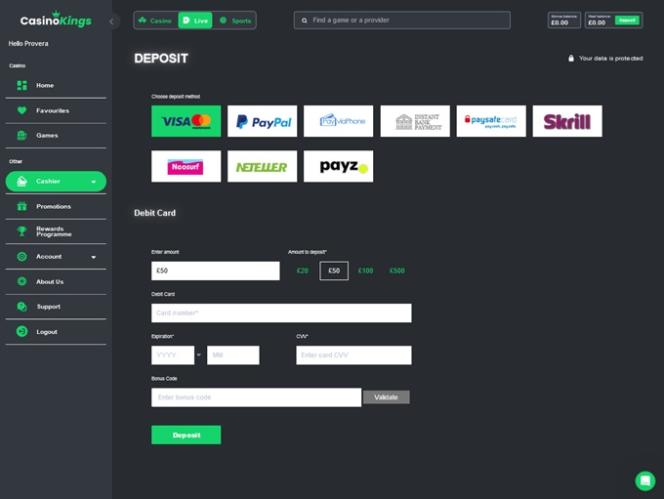 での銀行オプション Casino Kings