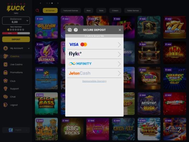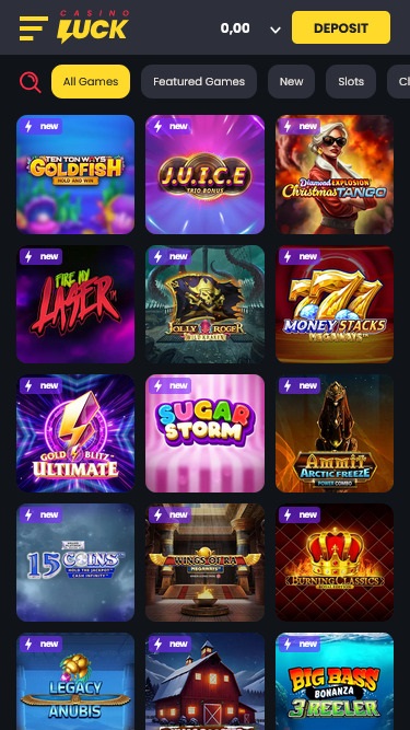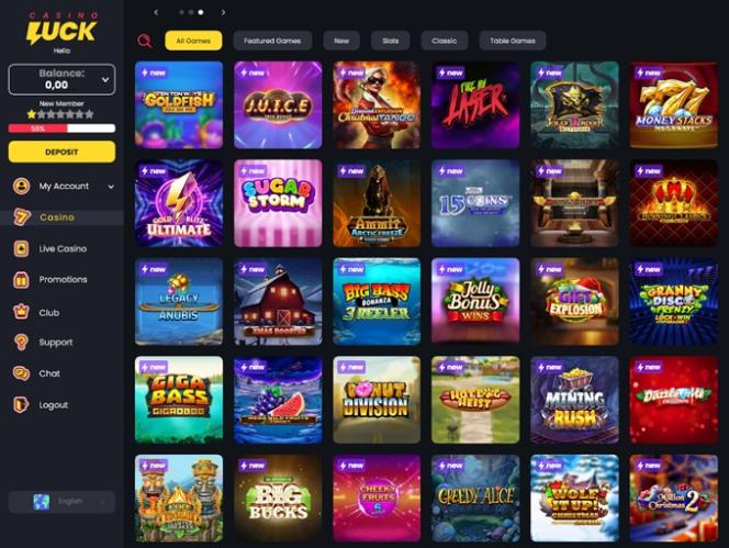 マルチソフトウェアカジノであるCasinoLuckは、 Amaya, Microgaming, Net Entertainment, BetSoft, 1x2gaming, Amatic Industries, Barcrest, Big Time Gaming, Evolution Gaming, EYECON, Ezugi, iSoftBet, lightningboxgames, Oryx, Play'n GO, playson, Quickspin, Yggdrasil, Wazdan, Booming Games, Stakelogic, Pragmatic Play, GAMING1, Red Tiger Gaming, Spinomenal, Red Rake Gaming, Skillzzgaming, SYNOT Games, Skywind, Triple Edge Studios, Northern Lights Gaming, Stormcraft Studios, Switch Studios, All41 Studios, Gluck Games, Gameburger Studios, Pulse 8 Studios, Neon Valley Studios, SpinPlay Games, HungryBear Gaming, Real Dealer Studios, GONG Gaming, On Air Entertainment, Buck Stakes Entertainment, Games Global, Wizard Games, Ainsworth, bluberi, Blueprint Gaming, Endemol Games, NeoGames, NextGen, Pariplay, Tom Horn Gaming, WMS, Inspired Gaming, Gaming Realms, SG Interactive, Gamomat, Scientific Games, Reel Time Gaming, Authentic Gaming, betiXon, Iron Dog Studio, Old Skool Studios, Foxium, Just For The Win, Reflex Gaming, PearFiction Studios, Wild Streak Gaming, Slingshot Studios, Fortune Factory Studios, RubyPlay, 4ThePlayer, AvatarUX, Gamevy, Crazy Tooth Studio, High 5 Games, ReelPlay, Alchemy Gaming, Snowborn Games, Boomerang Studios, Hacksaw Gaming, Bang Bang Games, Slotmill, Lucksome Gaming, Area Vegas, Wishbone Games, HammerTime Games, INO Games, Nailed It! Games, Atomic Slot Lab, Neko Games, Reel Kingdom, Oros Gaming, Indigo Magic and Light & Wonderを含むトッププロバイダーの幅広いゲームを提供しています。
