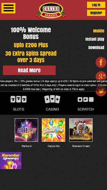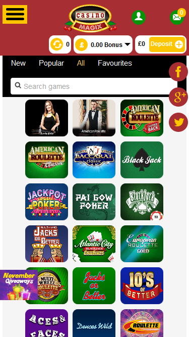 Casino Magixは Microgaming, Net Entertainment, EYECON, Genesis Gaming, Thunderkick, Games Global, Wizard Games, Blueprint Gaming, Cozy Games, NextGen and Pariplayを採用しており、ゲームはウェブベースのプラットフォームを通じて提供されています。スマートフォンやタブレットでゲームをプレイしたい方のために、モバイルサイトも提供されています。Blackjack