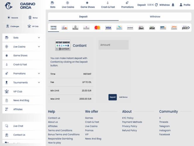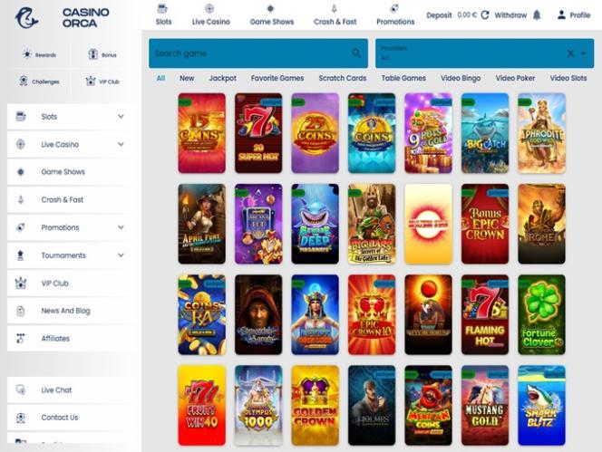 Casino Orca は、美しくスタイリッシュなデザインに加え、迅速かつ簡単なサインアップ プロセスと、現代のプレイヤーが求める魅力的なコンテンツを提供する、暗号通貨対応のプラットフォームです。