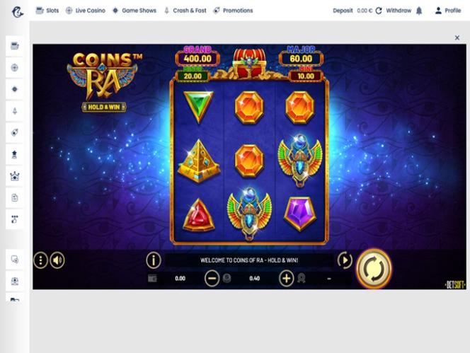 カジノプラットフォームは、ドイツ語、英語、スペイン語、フランス語、ノルウェー語、ポルトガル語で利用可能です。明るく、整理されており、一目見てこのギャンブルサイトのユーザーフレンドリーさに感銘を受けました。