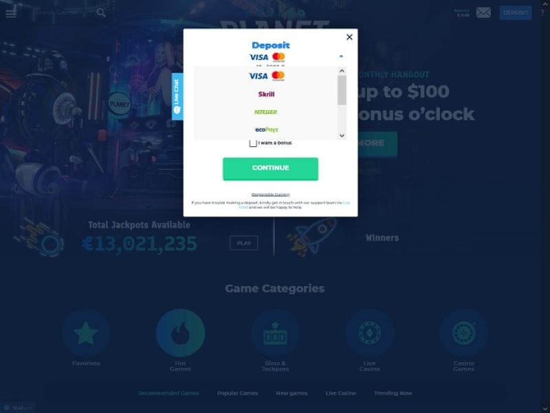 Casino Planetはバーチャルの世界を閉じてしまいました。