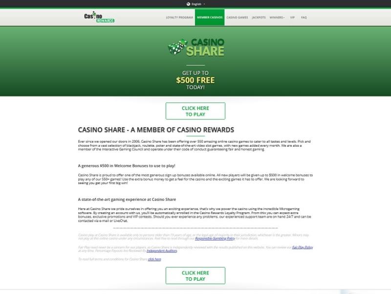 Casino Shareは長年にわたり世界中のプレイヤーにゲームを提供し、優れたサポート、豊富なゲームライブラリ、そして魅力的なボーナスで知られる、信頼されるブランドへと成長しました。2011年にCasino Rewards Groupに買収され、現在も優れたオンラインベッティングブランドとして事業を続けています。カジノ情報