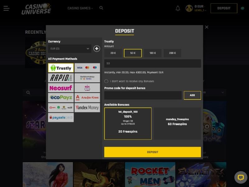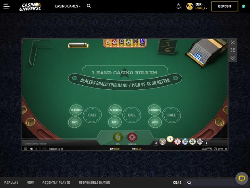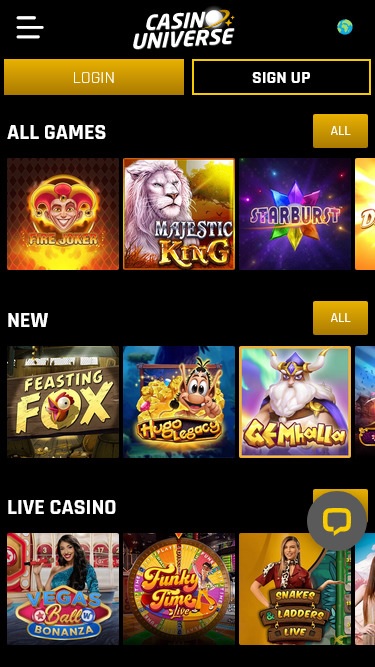 Casino Universeは Net Entertainment, Playtech, BetSoft, 1x2gaming, ELK Studios, Evolution Gaming, iSoftBet, Play'n GO, Quickspin, SOFTSWISS, Yggdrasil, Endorphina, Wazdan, Pragmatic Play, Nolimit City, Red Tiger Gaming, Spinomenal, Kalamba, BGAMING, Bulletproof Games, Gluck Games, Swintt, TrueLab Games, Holle Games, Amusnet Interactive, Ash Gaming, Tom Horn Gaming, Authentic Gaming, Iron Dog Studio, Reflex Gaming, Wild Streak Gaming, 4ThePlayer, AvatarUX, Gamevy, ReelPlay, Rarestone Gaming, Bang Bang Games, Peter And Sons, Leap Gaming, Apparat Gaming and Reel Kingdomを採用しており、カジノのゲームは魅力的なウェブベースのプラットフォーム上で提供されています。サイトの操作は問題なく、検索機能を使って探していたゲームをすべて見つけることができました。モバイルサポートも含まれているので、スマートフォンでもギャンブルを楽しめます。Caribbean Stud Poker
