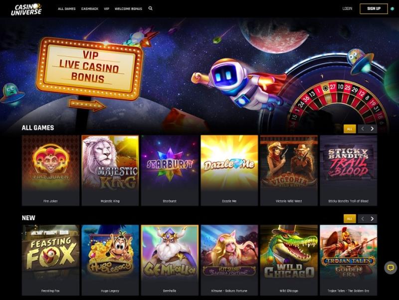Casino Universeは、マルタのN1 Interactive Ltdが運営するオンラインベッティングサイトです。膨大なゲームライブラリ、ライブディーラーによるテーブルゲーム、そして多層的なロイヤルティプログラムを備えており、新しいオンラインカジノをお探しの方に最適な選択肢となっています。カジノ情報