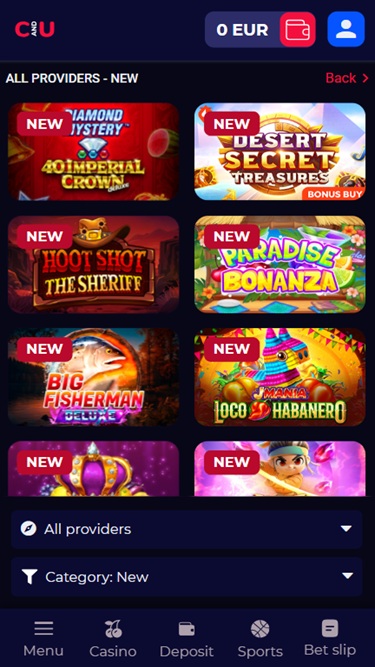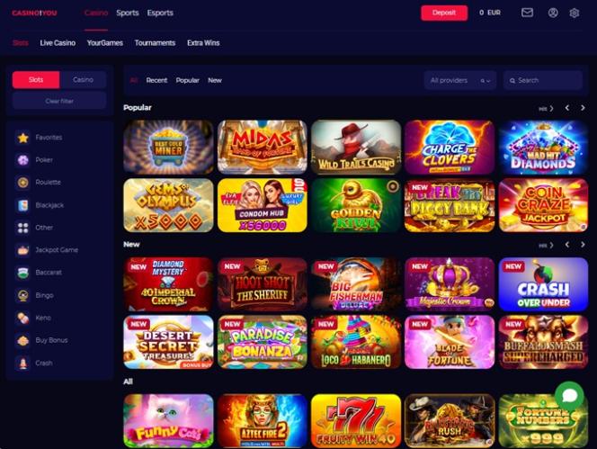 厳選された一流プロバイダーによる1,000種類以上のゲームをご用意。スピン、カードフリップ、サイコロロールのすべてが最先端技術によって支えられています。オンラインスロットからライブカジノゲームまで、CasinoAndYouにはあらゆる好みや嗜好に合ったゲームが揃っています。