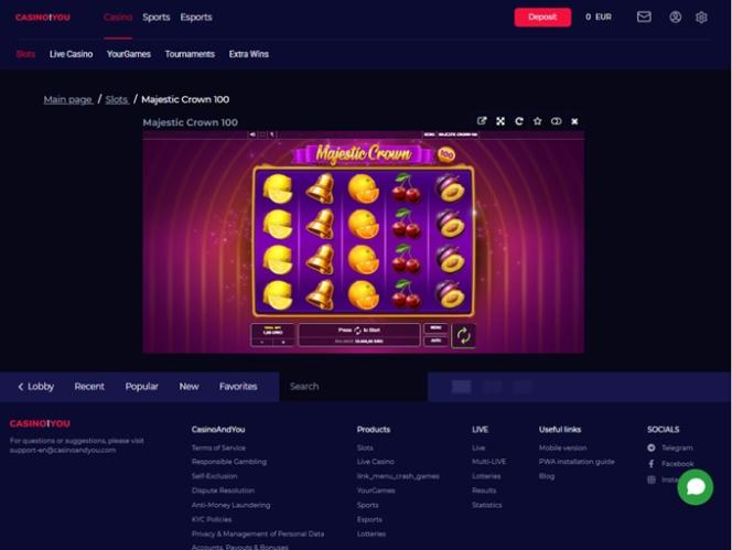 CasinoAndYouは、オンラインゲームに斬新でモダンなアプローチを取り入れ、プレイヤーにユニークな体験を提供しています。2025年5月に国際的なブックメーカーBETANDYOUによって開設されたこのサイトは、ポルトガル、オーストリア、ポーランド、スペイン、トルコ、ソマリア、ウズベキスタンなどの国々で急速に人気を博しました。