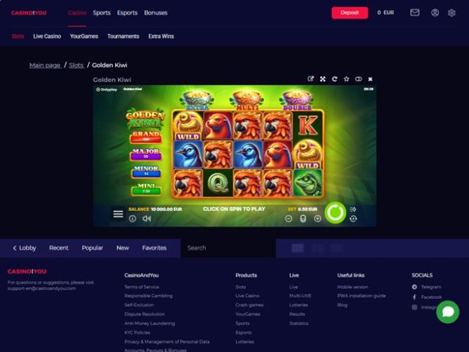 サイトにアクセスした瞬間から、CasinoAndYouは単なるゲームではなく、プレイヤーがゲーム体験をコントロールできるようにすることに重点を置いていることが分かります。サイト全体の雰囲気は洗練されていてシャープで、モバイルフレンドリーなインターフェースは、スマートフォンでもノートパソコンでも同じようにレスポンシブです。