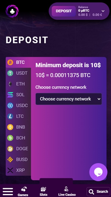 オペレーターは厳選された魅力的なゲームをカジノロビーに揃えています。オンラインスロットやルーレット、バカラ、ブラックジャックといった定番ゲームに加え、人気の暗号ゲーム(アビエイター、ゴール、プリンコ、ダイスなど)もお楽しみいただけます。