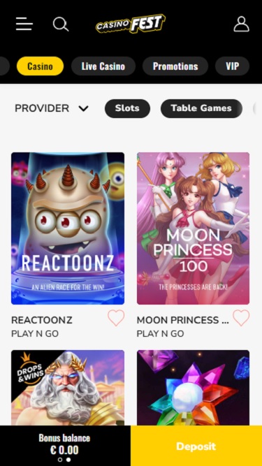 このレビューを書いている時点では、CasinoFest にはロイヤルティ プログラムがありませんでした。