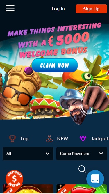このオンラインカジノとスポーツベッティング事業者は、整理整頓された洗練されたゲームプラットフォームを提供しています。インターフェースはネイビーカラーの背景と、驚くほど美しくデザインされたタイポグラフィを採用し、スタイリッシュなタッチと全体の雰囲気を高めています。カジノのすぐ下、メインメニューのヘッダーには、新規登録会員向けのプロモーション情報や、フルーツ、ヤシの木、ポリネシアのティキマスクなどの芸術的なカジノキャラクターが描かれた大きな横長のバナーがあります。