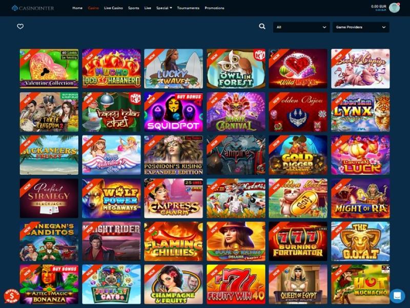 CasinoInterのゲームカテゴリーは、カジノ、ライブカジノ、スポーツ、ライブ、スペシャルですが、このオペレーターはスポーツベッティングの分野で魅力的なオファーを提供していますが、ここではスポーツベッティングに焦点を当てません。いつものように、私たちはオンラインカジノゲームに興味を持っています。