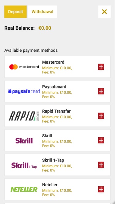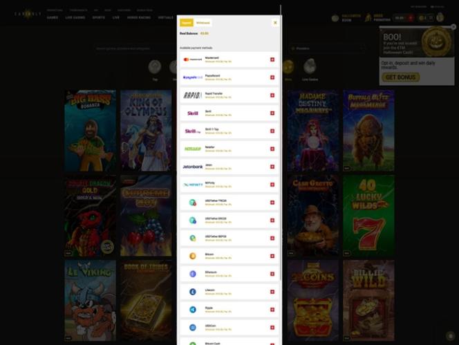 決済方法は国によって異なり、特定の法域では一部の決済方法が制限される場合があります。そのため、利用可能な入出金方法を正確にご確認ください。カジノのキャッシャーには様々な人気決済方法が用意されているため、どの国からお越しでも、従来型決済と暗号通貨決済の両方から幅広い決済方法からお選びいただけるはずです。