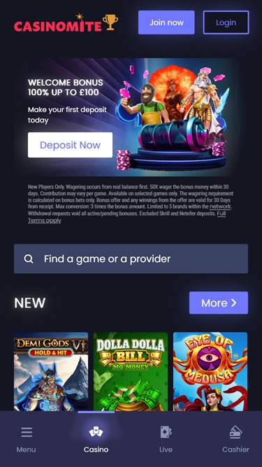 ゲーム感覚のロイヤルティプログラムだけでは物足りないという方は、Casinomite が豊富なボーナスやプロモーションもご用意していることをぜひご確認ください。きっと、カジノマイトに何度も戻ってきてもらえるはずです。まず、新規アカウント開設者は、入金マッチボーナスという形で提供される、高額なウェルカムボーナスを受け取ることができます。