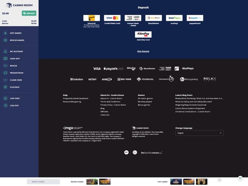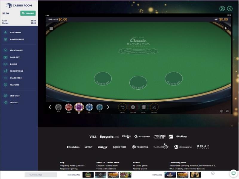 Casino Room は Microgaming, Net Entertainment, BetSoft, Barcrest, Big Time Gaming, ELK Studios, Evolution Gaming, Genesis Gaming, Play'n GO, Quickspin, Rabcat, Relax Gaming, Thunderkick, Yggdrasil, Wazdan, Booming Games, Pragmatic Play, Red Tiger Gaming, Skillzzgaming, Fantasma Games, SYNOT Games, Kalamba, Skywind, Triple Edge Studios, Northern Lights Gaming, Stormcraft Studios, Bulletproof Games, All41 Studios, Gluck Games, Gameburger Studios, Pulse 8 Studios, Neon Valley Studios, Golden Rock Studios, Swintt, TrueLab Games, SpinPlay Games, GONG Gaming, Games Global, 2by2 Gaming, Aristocrat, NextGen, NYX Interactive, Tom Horn Gaming, Inspired Gaming, SG Interactive, Authentic Gaming, Iron Dog Studio, Foxium, Just For The Win, Reflex Gaming, PearFiction Studios, Slingshot Studios, Fortune Factory Studios, 4ThePlayer, AvatarUX, Crazy Tooth Studio, ReelPlay, BB Games, Snowborn Games, Boomerang Studios, Hacksaw Gaming, Bang Bang Games, Half Pixel Studios, Peter And Sons and Eurostar Studiosによって提供されており、カジノの Web ベースのプラットフォームを通じてアクセスできる数百ものゲームがカジノに提供されています。Blackjack