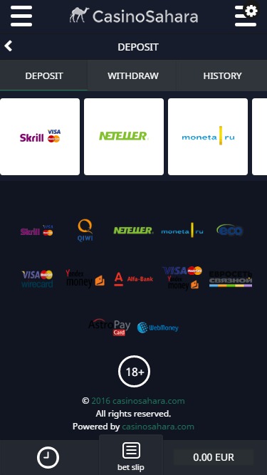 Casino Saharaは2016年に開設され、Radon BVによって運営されているオンラインベッティングサイトです。プレイヤー向けに充実したベッティングインターフェースを備え、カジノ、スポーツベッティングプラットフォーム、ポーカーゲームを提供しており、主にヨーロッパ市場に焦点を当てています。豊富な決済方法とリーズナブルなボーナス条件も魅力で、Casino Saharaはプレイする価値のあるサイトです。カジノ情報