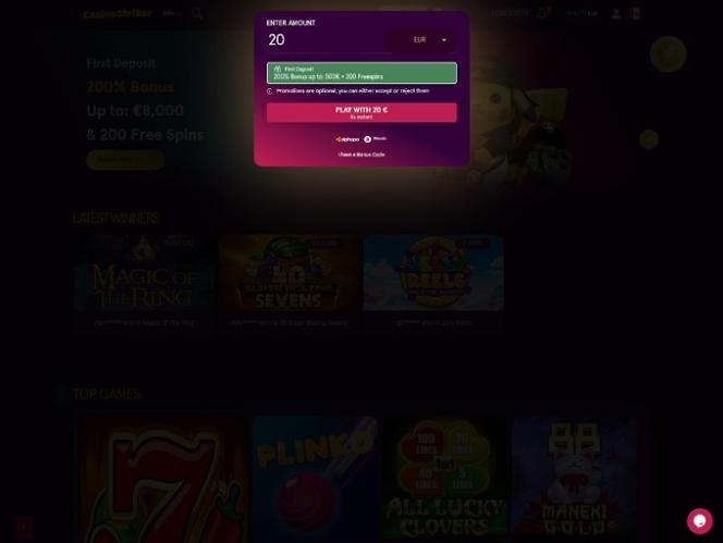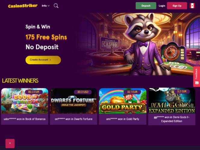 CasinoStriker のオーナーと運営者は、フィンランド、オーストラリア、ドイツ、カナダのプレイヤーを招待し、同社が提供するギャンブル タイトルの豊富な品揃えをチェックしてもらっています。