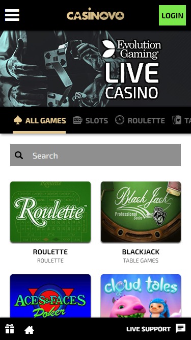 Casinovo は Microgaming, BetSoft, Big Time Gaming, Evolution Gaming, Ezugi, Genesis Gaming, iSoftBet, Quickspin, Rabcat, The Art Of Games, Endorphina, Games Global, bluberi and NextGenによって運営されており、そのカジノ ゲームは Web ベースのプラットフォームだけでなく、インターネット接続があればどこからでもプレイできるモバイル サイトを通じても提供されています。Blackjack
