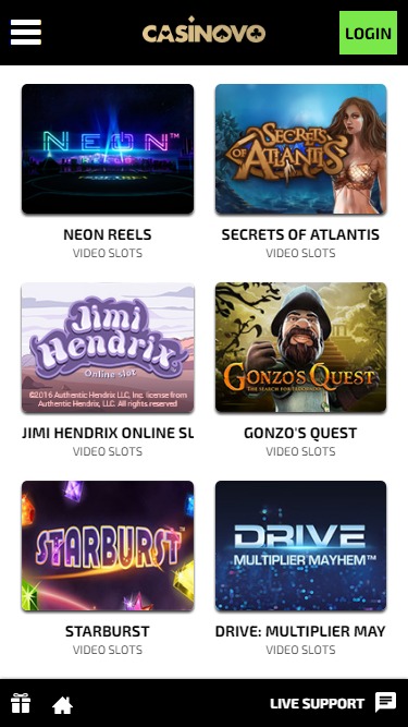 Casinovoは2009年にオープンしたオンラインベッティングサイトであり、世界中のお客様に豊富なゲームライブラリを提供しています。キュラソー島のDialInvest International NVによって運営されており、堅実な経営と迅速な出金で高い評価を得ています。Casinovoは、お客様にご利用いただく価値のあるサイトです。カジノ情報