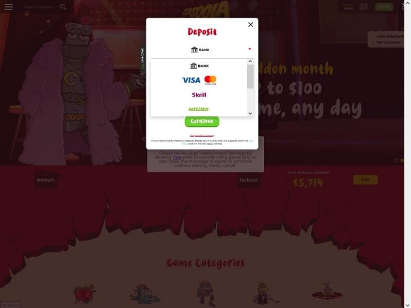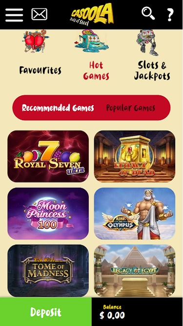 Casoolaは Microgaming, Big Time Gaming, ELK Studios, Evolution Gaming, Ezugi, lightningboxgames, Oryx, Quickspin, Rabcat, Relax Gaming, Yggdrasil, Wazdan, IGT, Skillzzgaming, Fantasma Games, Kalamba, Sigma Gaming, Skywind, Triple Edge Studios, Northern Lights Gaming, Stormcraft Studios, Electric Elephant Games, All41 Studios, Gameburger Studios, Pulse 8 Studios, Golden Rock Studios, TrueLab Games, Games Global, 2by2 Gaming, NextGen, Push Gaming, Gamomat, CORE Gaming, Foxium, Just For The Win, PearFiction Studios, Slingshot Studios, Golden Hero, Fortune Factory Studios, Crazy Tooth Studio, Half Pixel Studios and Aurum Signature Studiosを採用しており、ゲームは魅力的で操作しやすいウェブベースのプラットフォームで提供されています。サイトのテーマがとても気に入っており、この奇妙な名前のサイトでプレイする魅力をさらに高めていると感じています。モバイルベッティングも完全にサポートされているので、スマートフォンやタブレットからプレイできます。