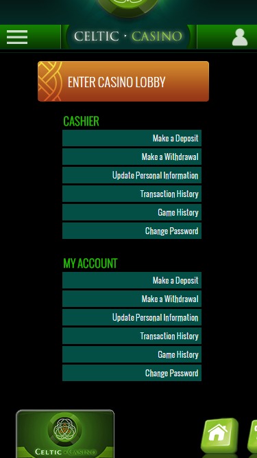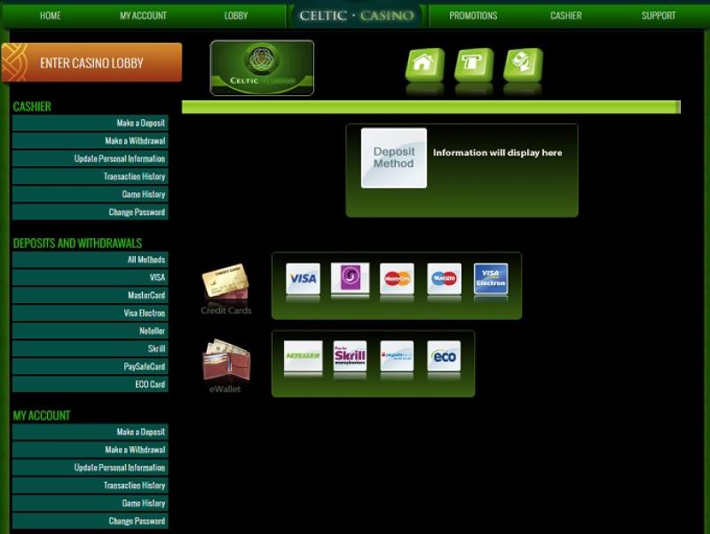 Celtic Casino は BetSoft, Visionary iGaming and Distance Gamingによって運営されており、そのゲームは Web ベースのプラットフォームを通じて提供されます。