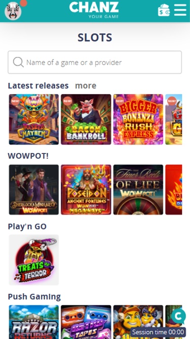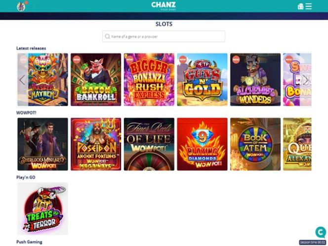 Chanz Casinoは Microgaming, Net Entertainment, Big Time Gaming, Evolution Gaming, Genesis Gaming, Play'n GO, Rabcat, Thunderkick, Yggdrasil, Booming Games, Pragmatic Play, Red Tiger Gaming, Skillzzgaming, Fantasma Games, Triple Edge Studios, Northern Lights Gaming, Stormcraft Studios, Switch Studios, Bulletproof Games, All41 Studios, Gluck Games, Gameburger Studios, Pulse 8 Studios, Neon Valley Studios, Golden Rock Studios, SpinPlay Games, Real Dealer Studios, GONG Gaming, Buck Stakes Entertainment, Games Global, 2by2 Gaming, Push Gaming, Old Skool Studios, Foxium, Just For The Win, Reflex Gaming, Storm Gaming Technology, PearFiction Studios, Wild Streak Gaming, Slingshot Studios, Fortune Factory Studios, 4ThePlayer, AvatarUX, Gamevy, Crazy Tooth Studio, ReelPlay, Alchemy Gaming, Plank Gaming, Snowborn Games, Boomerang Studios, Hacksaw Gaming, Gold Coin Studios, Bang Bang Games, Half Pixel Studios, Peter And Sons, Eurostar Studios, Aurum Signature Studios, Area Vegas, Wishbone Games, Circular Arrow, HammerTime Games, INO Games, Nailed It! Games, Neko Games, Reel Kingdom and Oros Gamingを採用しており、ゲームはウェブベースのインスタントプレイプラットフォームを通じて提供されます。プレイヤーはインターネットブラウザから登録、入金、ゲームプレイをすべて行うことができます。また、モバイルプレイにも対応しており、スマートフォンやタブレットからでもプレイ可能です。