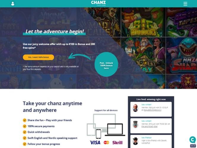Chanz Casino は、ヨーロッパの賭博市場に特化したオンライン賭博サイトで、2014 年に設立されました。このカジノは Dreambox Games が所有および運営しており、エストニアを拠点としています。迅速な支払い時間、優れたボーナス条件、大規模なゲーム ライブラリで知られており、これらの特徴により、Chanz Casino は注目に値する優れたカジノとなっています。