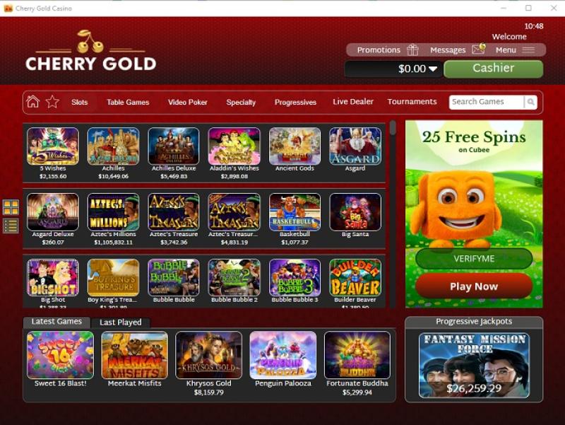 Cherry Gold Casino は Real Time Gaming, Visionary iGaming and Spinlogic Gamingによって運営されており、そのゲームはダウンロード可能なソフトウェアと Web ベースのプラットフォームの両方を通じて提供されます。