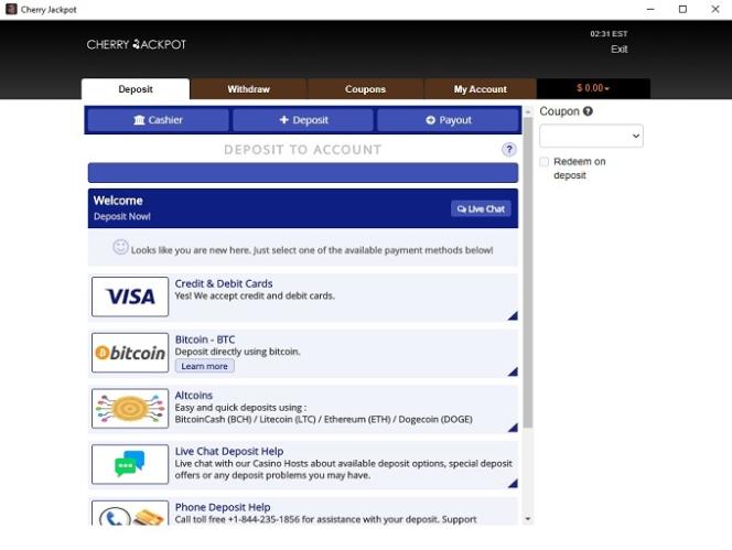 Cherry Jackpot Casinoのバンキングシステムは、アメリカ人に優しいサイトとして優れています。入金・出金には、American Express、銀行振込、MasterCard、Skrill、Neteller、Visa、ecoPayz、ビットコインが利用可能です。賞金の出金には24~48時間の保留時間があり、実際にお手元に届くまでには数日かかる場合があります。賞金の出金限度額は週4,000ドルです。