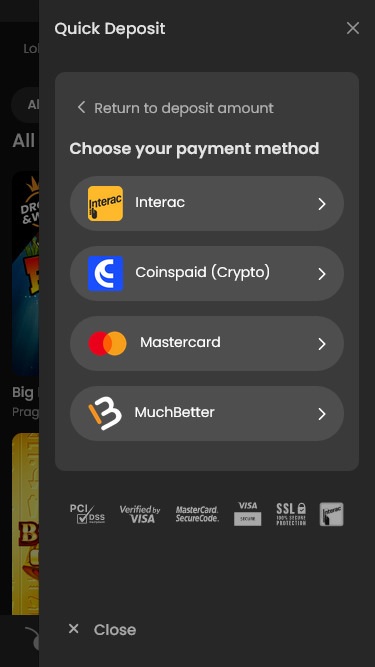 カジノ ロビーでは、Live - Spaceman、Cabin Crashers、Aviator、Limbo、Turn Your Fortune、Grand Wheel、Four Aces、MacLudo、Dices などのエキサイティングでユニークなゲームを強調したグリッド レイアウトが採用されています。
