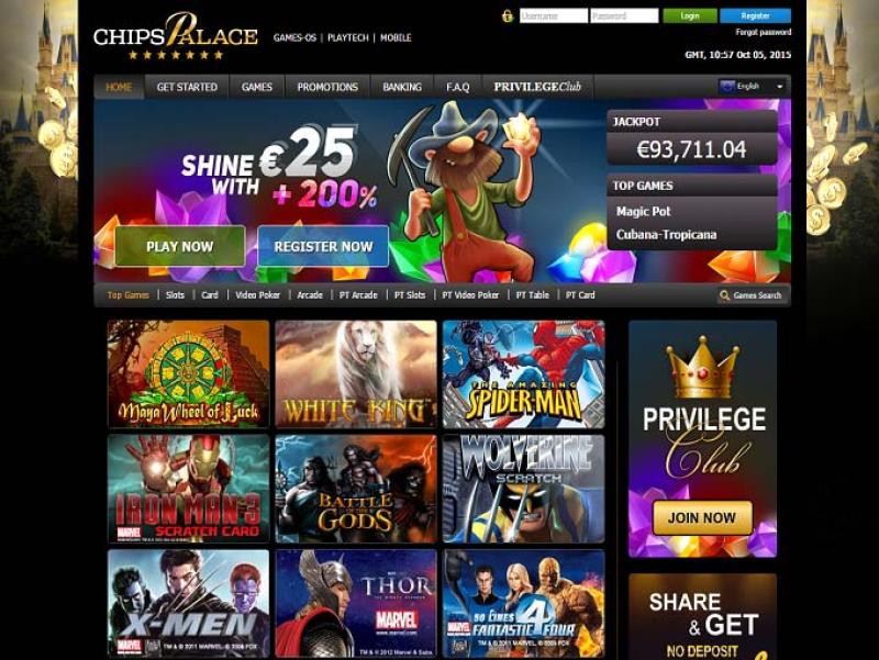 ChipsPalace Casino は、2014 年に Cyberneedle NV によって設立されたオンライン ベッティング サイトです。カジノはエレガントな外観と雰囲気を備えており、顧客にプログレッシブ ジャックポットも提供する優れたゲーム ライブラリも備えています。カジノ情報