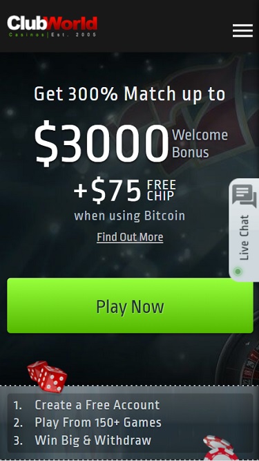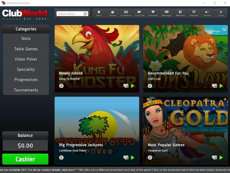 Club Worldでは、 Real Time Gamingソフトウェアをダウンロードまたはインスタントプレイでご利用いただけます。すべてのゲームにアクセスするには、カジノをダウンロードする必要があります。