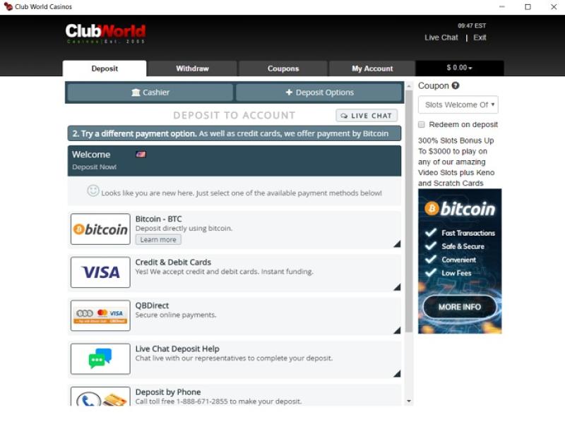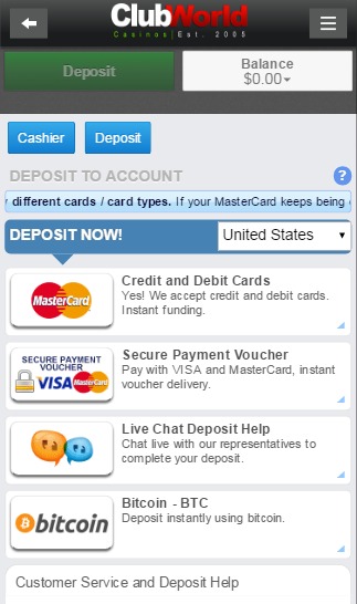 Club World Casinoのバンキングシステムは、アメリカ向けのサイトとしては非常に優れています。プレイヤーはクレジットカード、eWallet、電信送金で入金でき、出金も同様の方法で処理されます。Club World Groupは安定した出金実績を誇りますが、米国のギャンブル取引には制限があるため、出金時間は必ずしも最速とは言えません。それでも、ここのシステムは、アメリカ市場にサービスを提供するカジノとしては、私たちがこれまで見てきた中で最も優れたシステムの一つです。