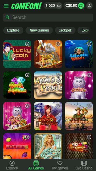 ComeOnカジノは Microgaming, Net Entertainment, Playtech, BetSoft, 1x2gaming, Barcrest, Big Time Gaming, Evolution Gaming, Genesis Gaming, lightningboxgames, Oryx, Play'n GO, Quickspin, Rabcat, Relax Gaming, Thunderkick, Yggdrasil, Wazdan, Pragmatic Play, Nolimit City, Red Tiger Gaming, Triple Edge Studios, Northern Lights Gaming, Stormcraft Studios, Switch Studios, Gluck Games, Gameburger Studios, Pulse 8 Studios, Neon Valley Studios, Golden Rock Studios, Shuffle Master, SpinPlay Games, Real Dealer Studios, GONG Gaming, Buck Stakes Entertainment, Games Global, 2by2 Gaming, Blueprint Gaming, NYX Interactive, Push Gaming, WMS, SG Interactive, Gamomat, Red7Mobile, Scientific Games, Authentic Gaming, Iron Dog Studio, Old Skool Studios, Foxium, Just For The Win, PearFiction Studios, Wild Streak Gaming, Slingshot Studios, Fortune Factory Studios, STHLM Gaming, Gamevy, Crazy Tooth Studio, Alchemy Gaming, Boomerang Studios, Hacksaw Gaming, Gold Coin Studios, Bang Bang Games, Half Pixel Studios, Slotmill, SilverBack Gaming, Peter And Sons, Eurostar Studios, Aurum Signature Studios, Armadillo Studios, FlipLuck, Area Vegas and Apparat Gamingを採用しており、プレイヤーは運営会社のブラウザプラットフォームを通じて数百ものゲームをプレイできます。また、ComeOnはモバイルプラットフォームも提供しており、スマートフォンやタブレットでカジノゲームをいつでもどこでもお楽しみいただけます。