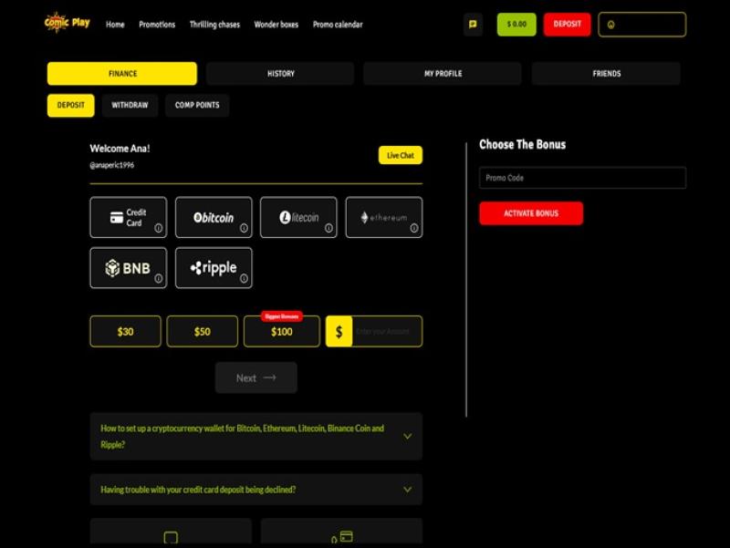 ComicPlay カジノに登録すると、すべてのプレイヤーに最初の 4 回の入金に有効なウェルカム パックが付与されます。
