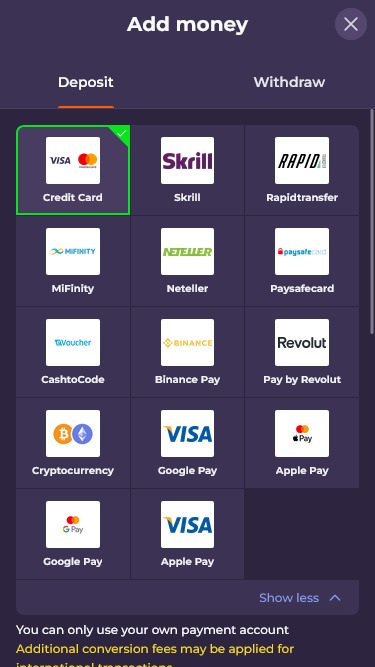 また、別途アプリをダウンロードすることなく、モバイルデバイスですべてのゲームとアクティビティをお楽しみいただけます。ウェブサイトはAndroidとiOSデバイスに完全に最適化されており、モバイルブラウザからアカウントにログインするだけですぐにプレイを開始できます。