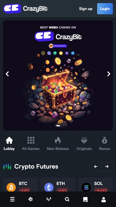 ここでは、フィーチャーバイ、RNGゲーム、オリジナルタイトル、スポーツベッティングなど、ゲームのより詳細な分類を確認できます。まとめると、Crazybit.ioカジノには、完璧なギャンブル体験に必要な要素がすべて揃っています。もう少し色彩豊かで鮮やかなコンテンツが欲しいという点を除けば、本質的に悪い点はありません。