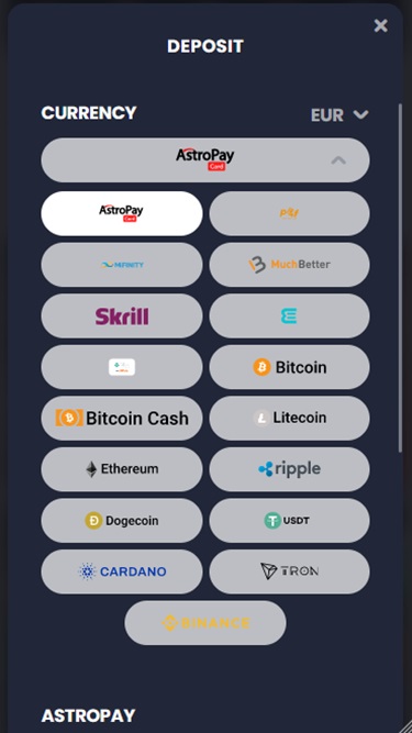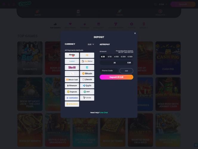 当カジノは豊富な種類の暗号通貨に対応しており、暗号通貨決済に切り替えれば迅速な送金が可能です。また、当ゲームサイトでは、銀行振込、デビットカード、クレジットカード、人気の電子ウォレットもご利用いただけます。